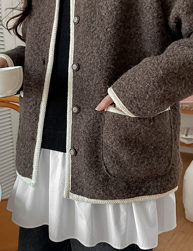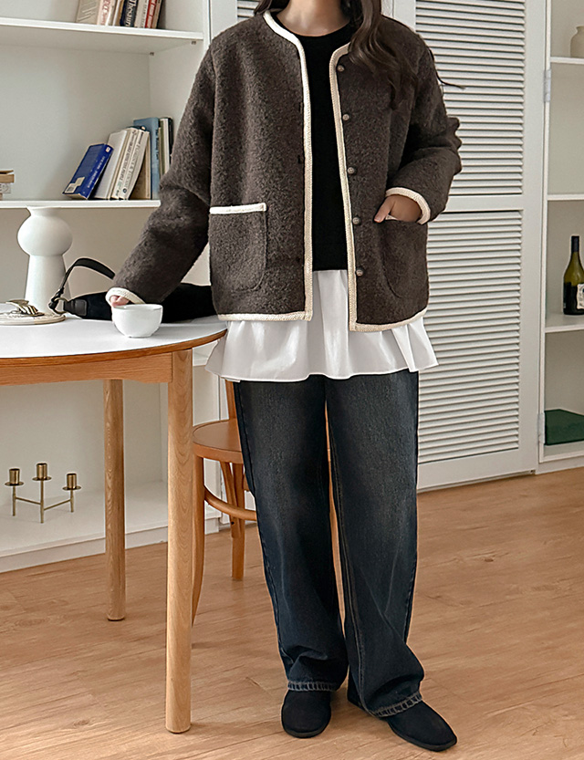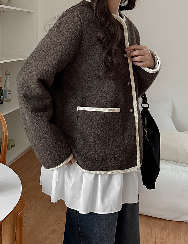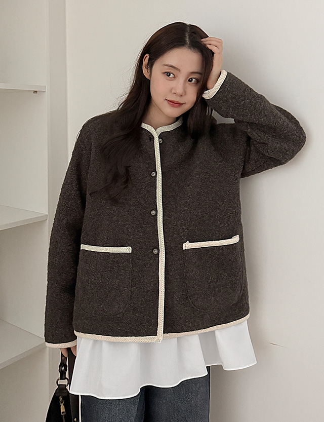 쿠쿠슈 配色 纯色 부클 夹克 85936