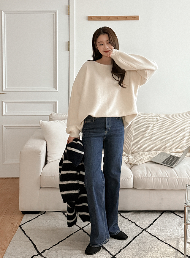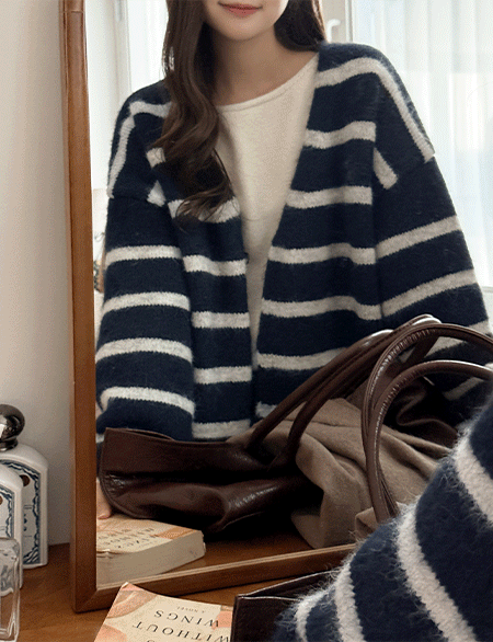 • 앤드릴 宽松 条纹 V领 开衫 85931