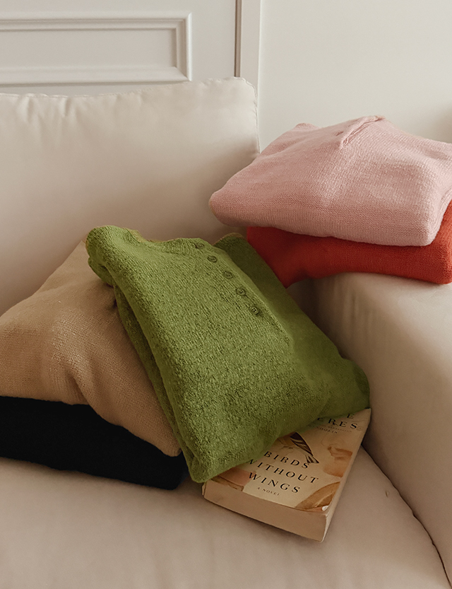 박시한핏으로 여유롭게 입기 좋은 헨리넥 니트