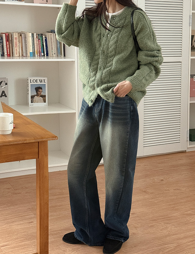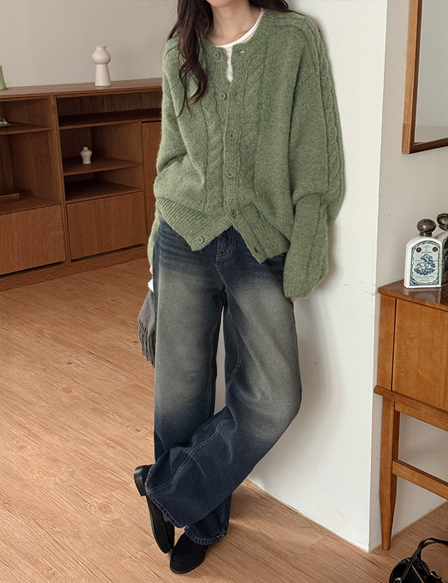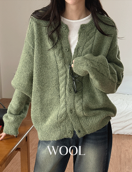 • 론미 羊毛 케이블 圆领 开衫 85909