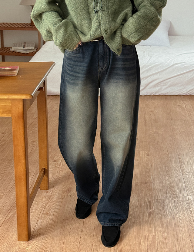 캐주얼 워싱 와이드 데님 팬츠예요.