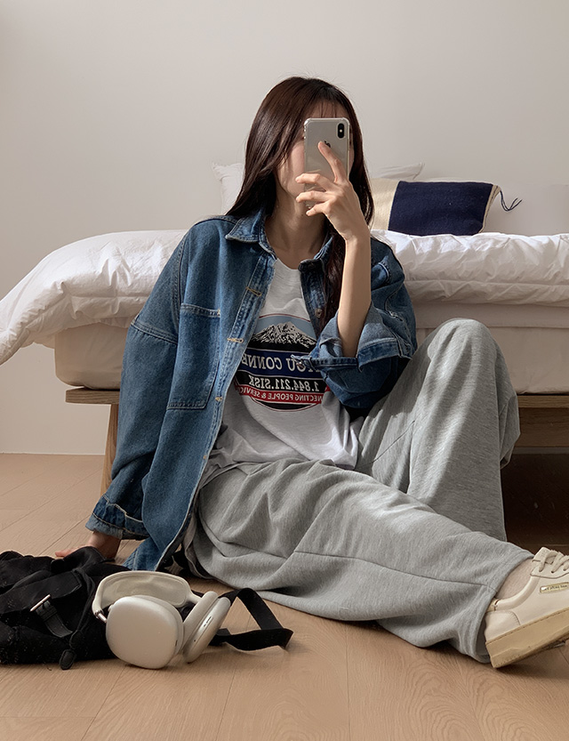 데님 특유의 캐주얼한 분위기로 티셔츠, 니트, 맨투맨 등