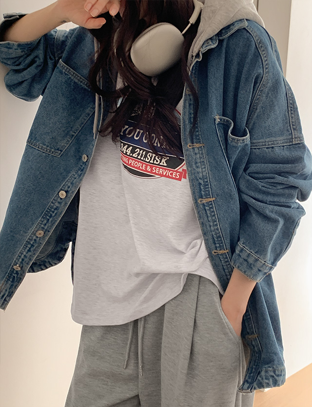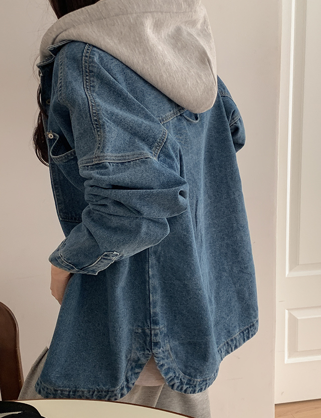 후드를 떼어내면 깔끔한 데님 셔츠 자켓 스타일로 연출할 수 있어