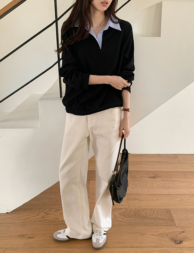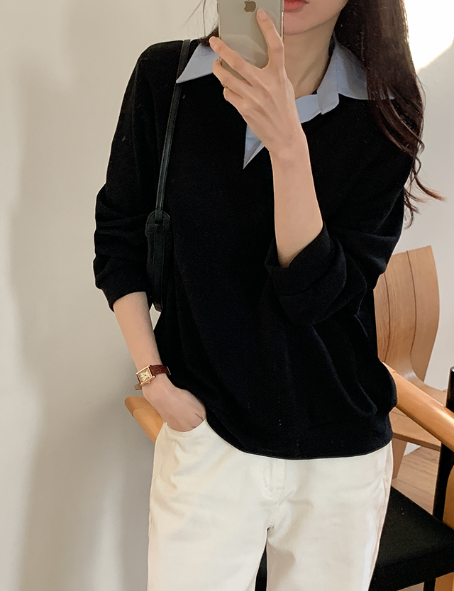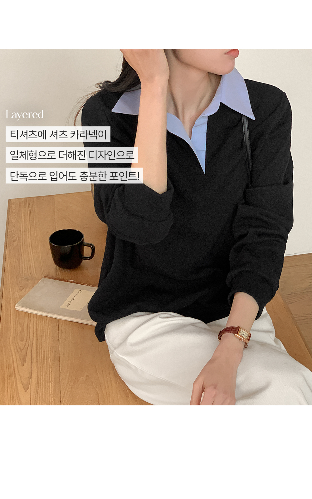 베이직한 티셔츠 디자인에 셔츠 카라가 더해져