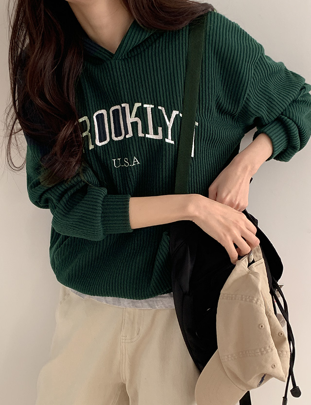 데일리로 편안하게 즐기기 좋은 브루킨 이지핏 골지 후드 티셔츠
