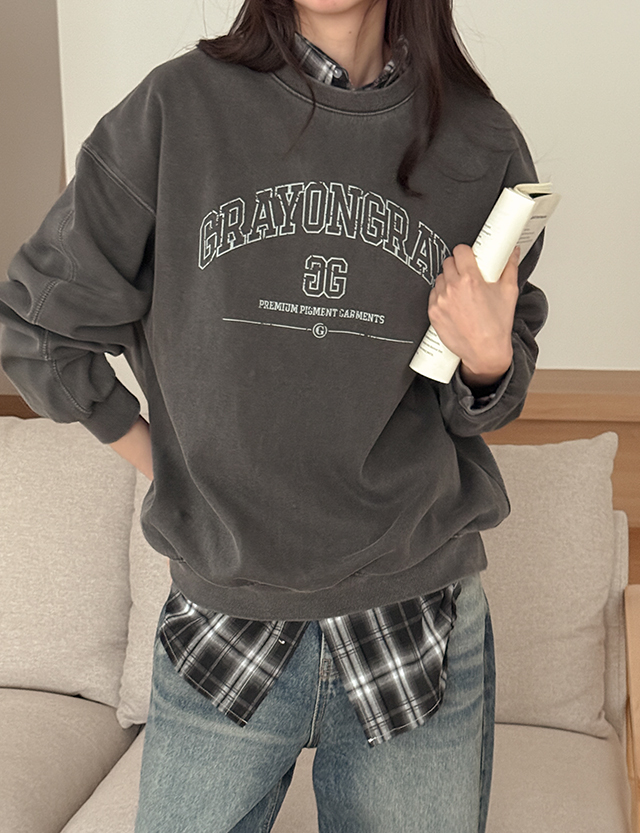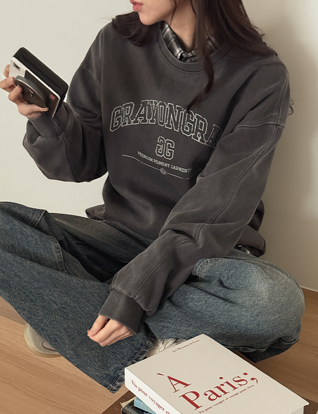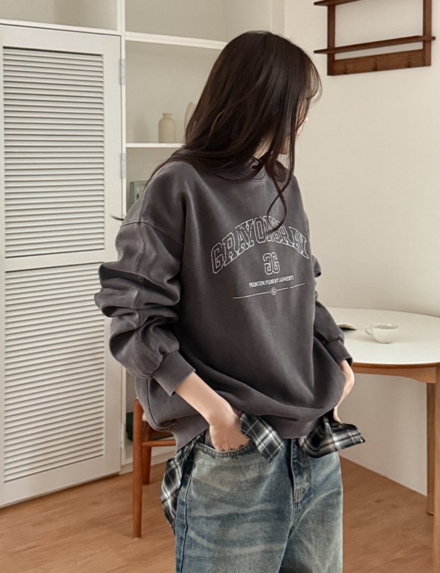 에펠 宽松 피그먼트 레터링 套头卫衣 86010
