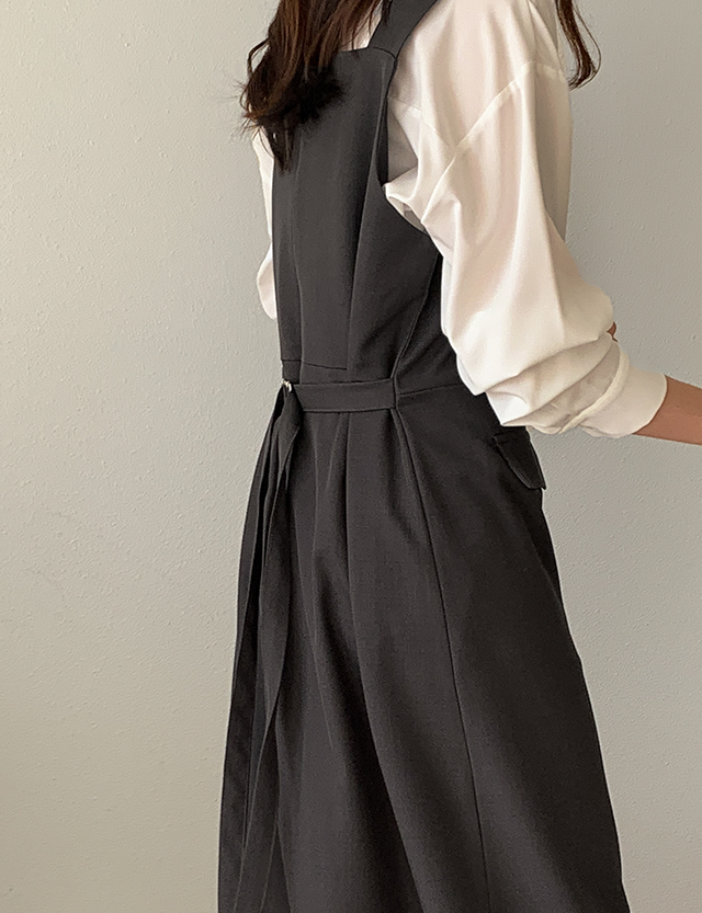허리 뒤 버클 스트랩으로 라인을 잡아 여성스럽게,