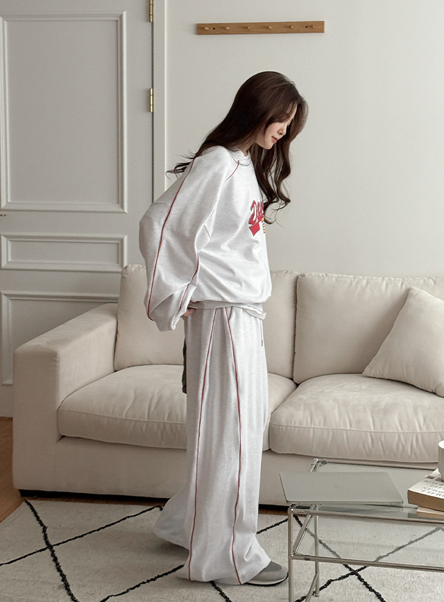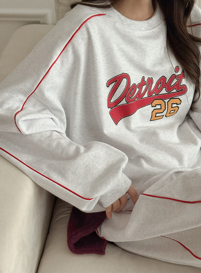 콘미 宽松 레터링 线条 关键点 套头卫衣 86095