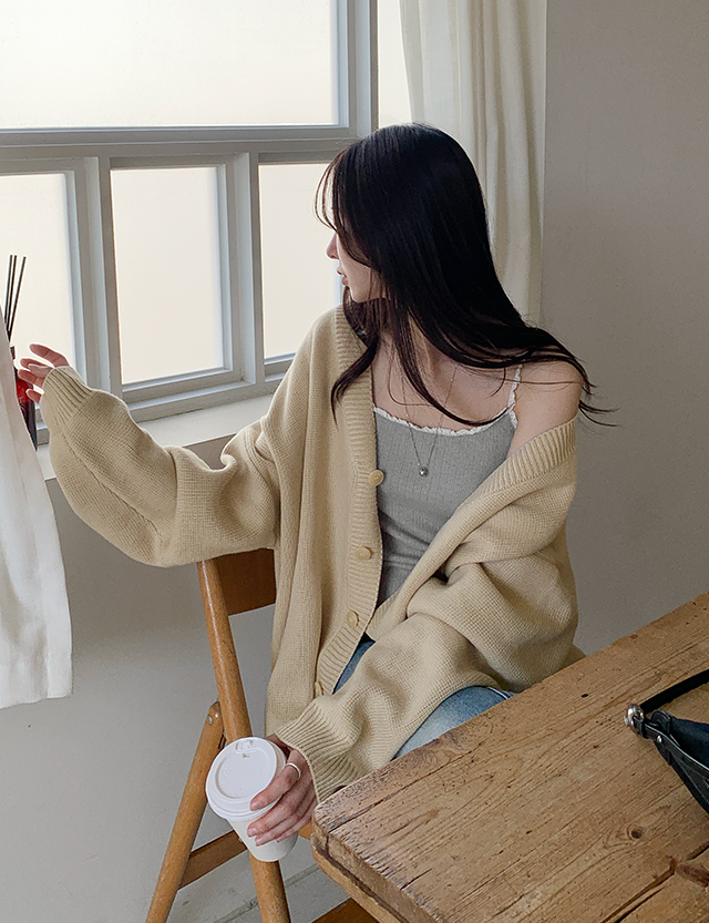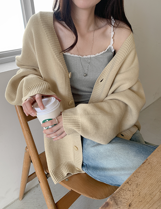 V넥 루즈핏 가디건