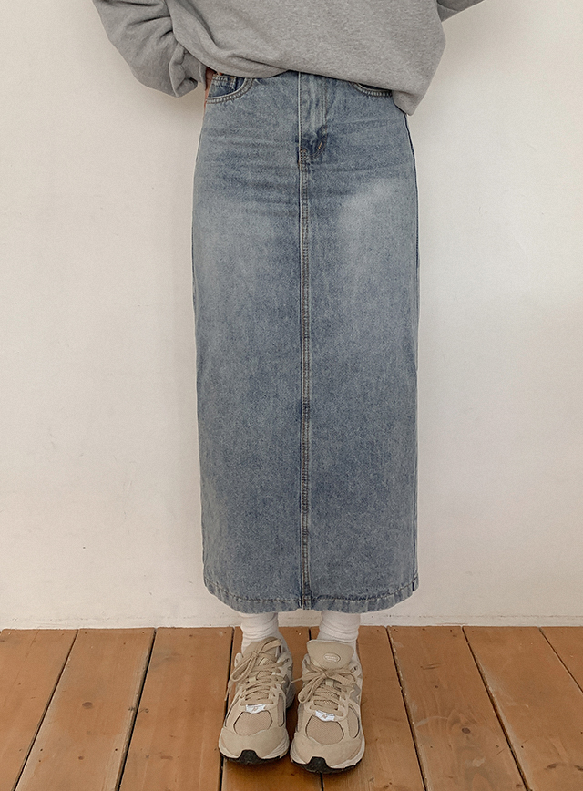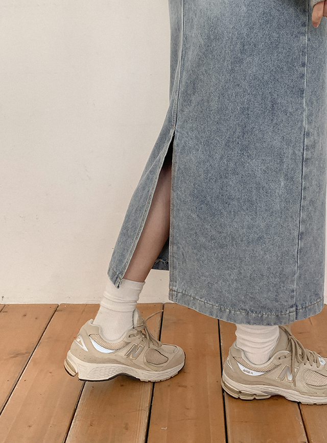 [2가지기장] 샤투아 뒷밴딩 裂縫 长款 牛仔色 裙子 86137