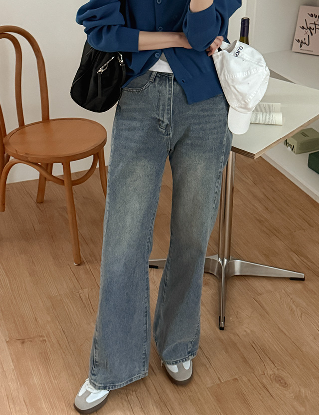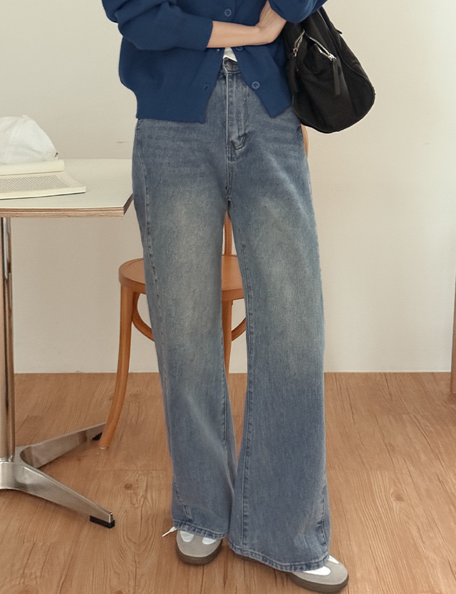 - 세미 와이드 핏으로 깔끔하게 떨어지는 데님 팬츠
