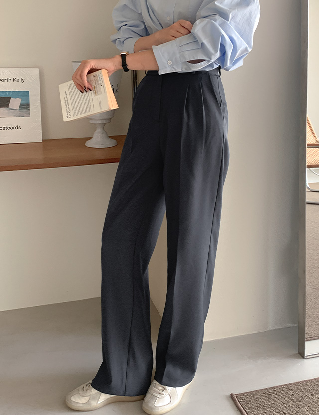 [3가지기장] 델투 뒷밴딩 핀턱 宽 宽松裤 86077
