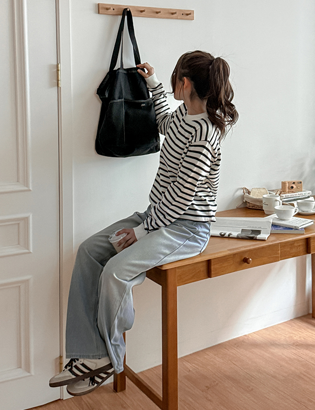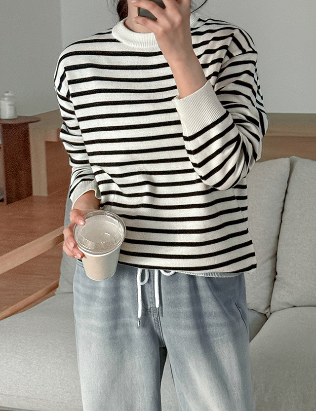 [남여공용] 레버 条纹 圆领 针织衫 86165