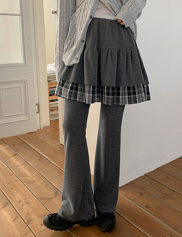 브브츄 松紧带 分层 格子 迷你 裙子 86142