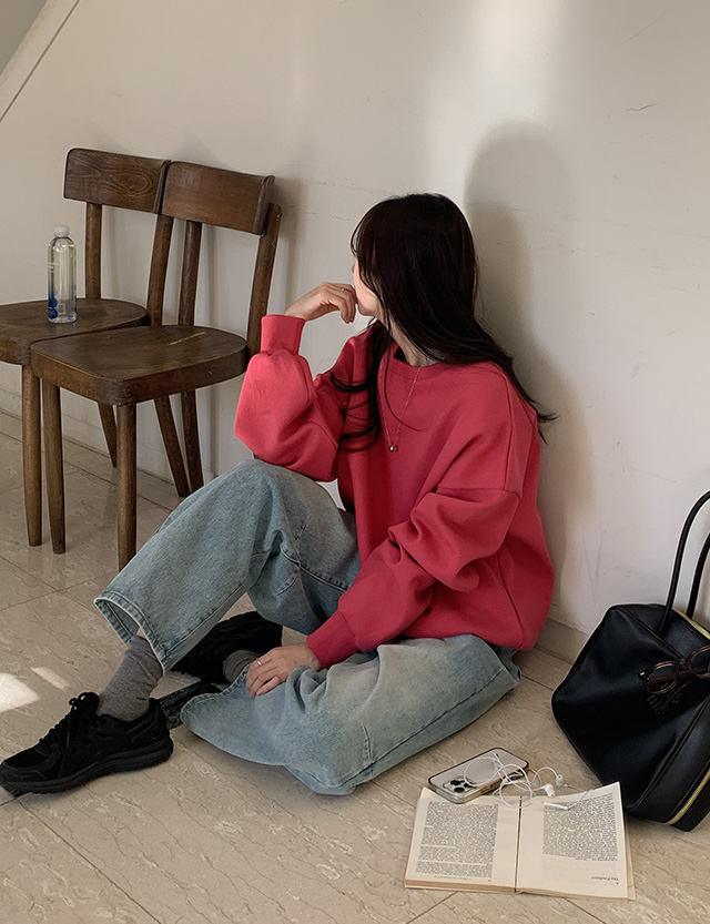 • [컬러기획][엠디픽] 컬러라인 二重 圆领 套头卫衣 86055