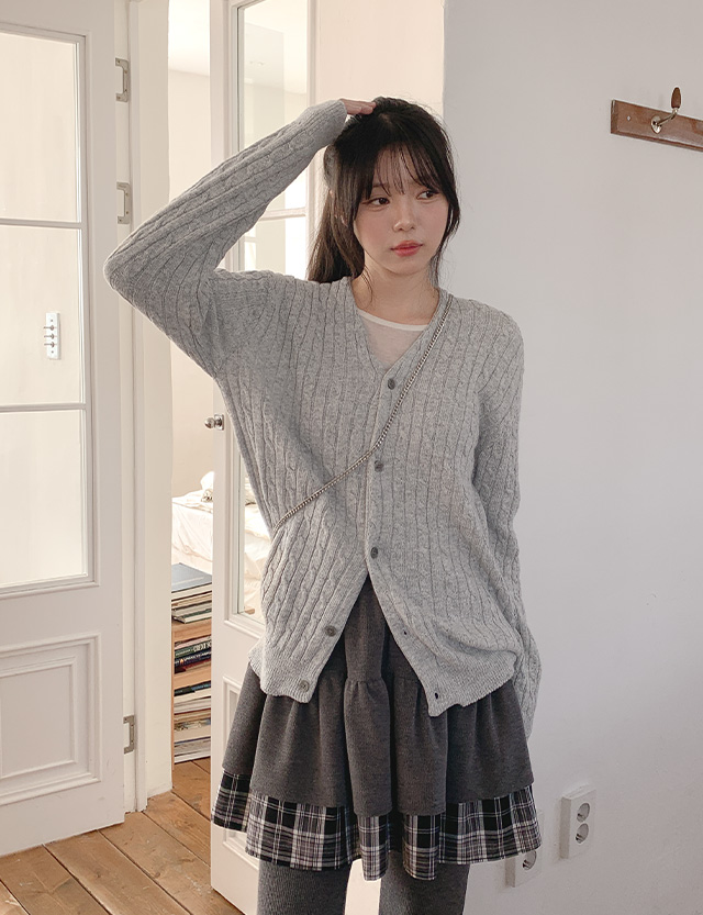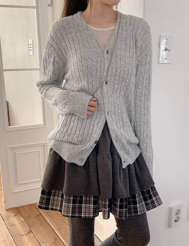 브브츄 松紧带 分层 格子 迷你 裙子 86142