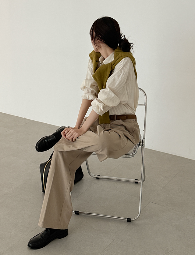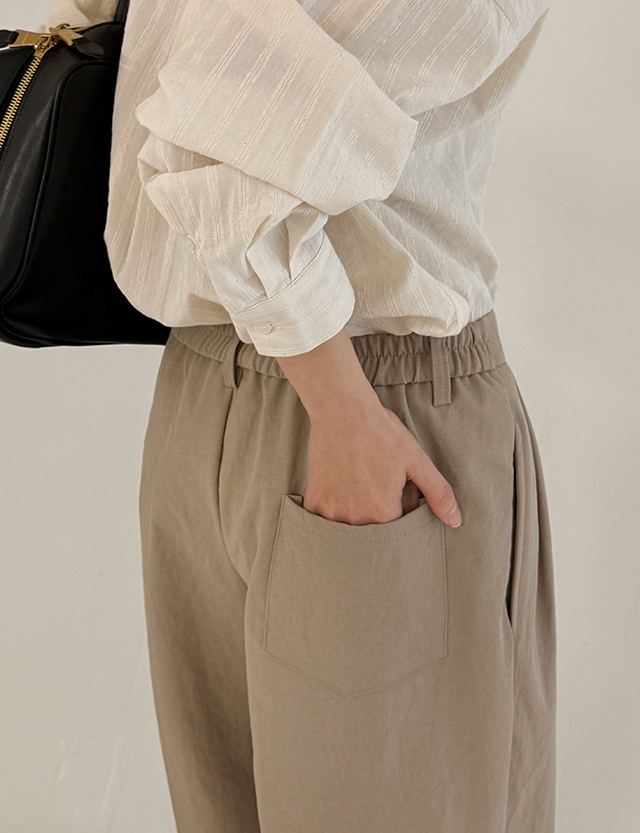 핀턱 디테일로 다리 라인을 길고 슬림하게 연출해주며,