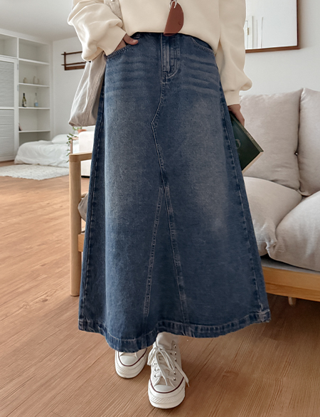 • [2가지기장] 세이로 속밴딩 A字型 牛仔色 裙子 86257