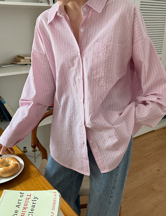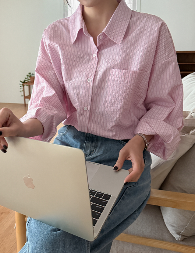로넷 条纹 宽松 衬衫 86128