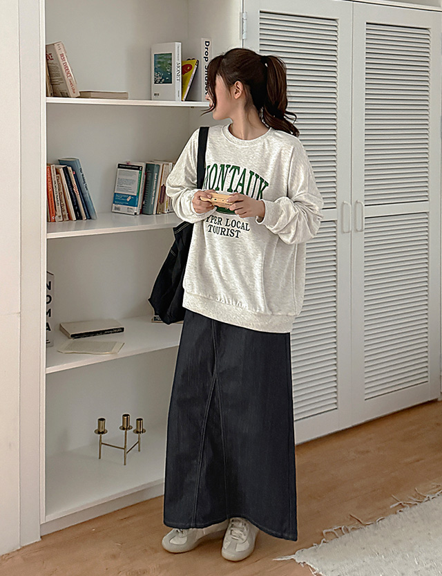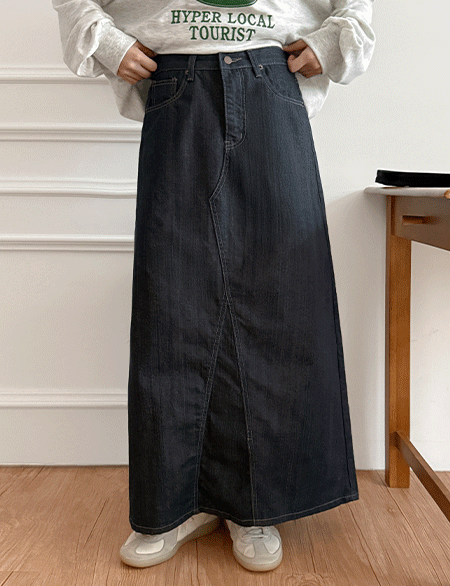 • 앗티 뒷밴딩 A字型 生牛仔服 牛仔色 长款 裙子 86170