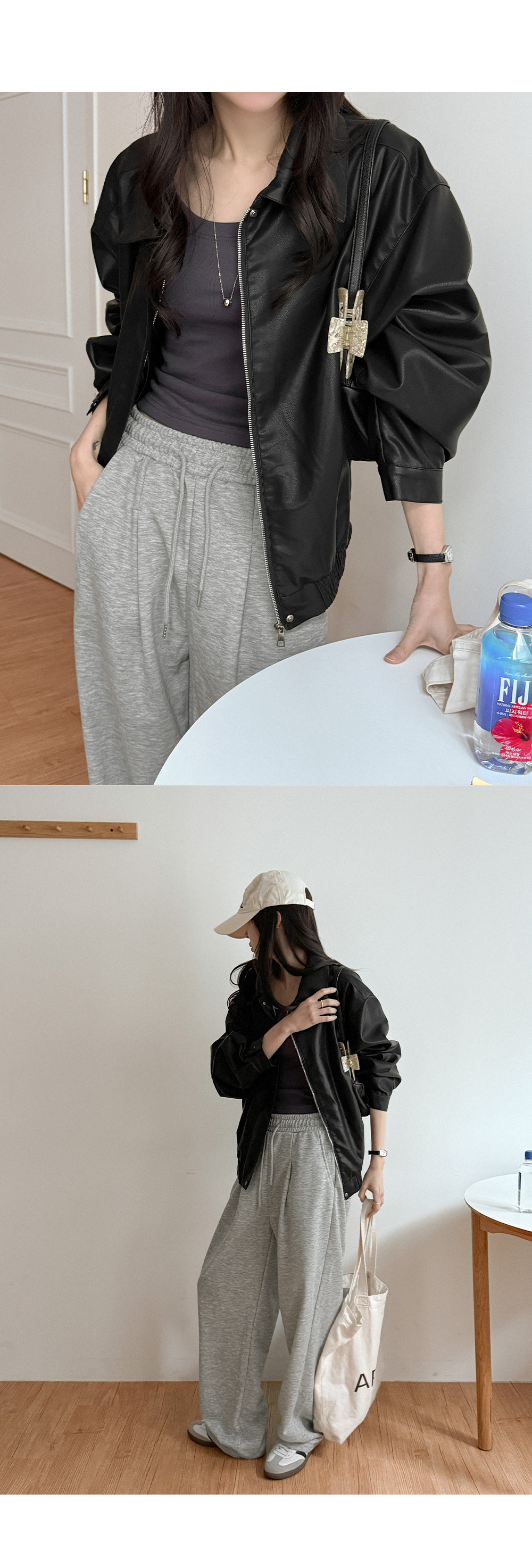 - 은은한 광택감의 레더 패브릭