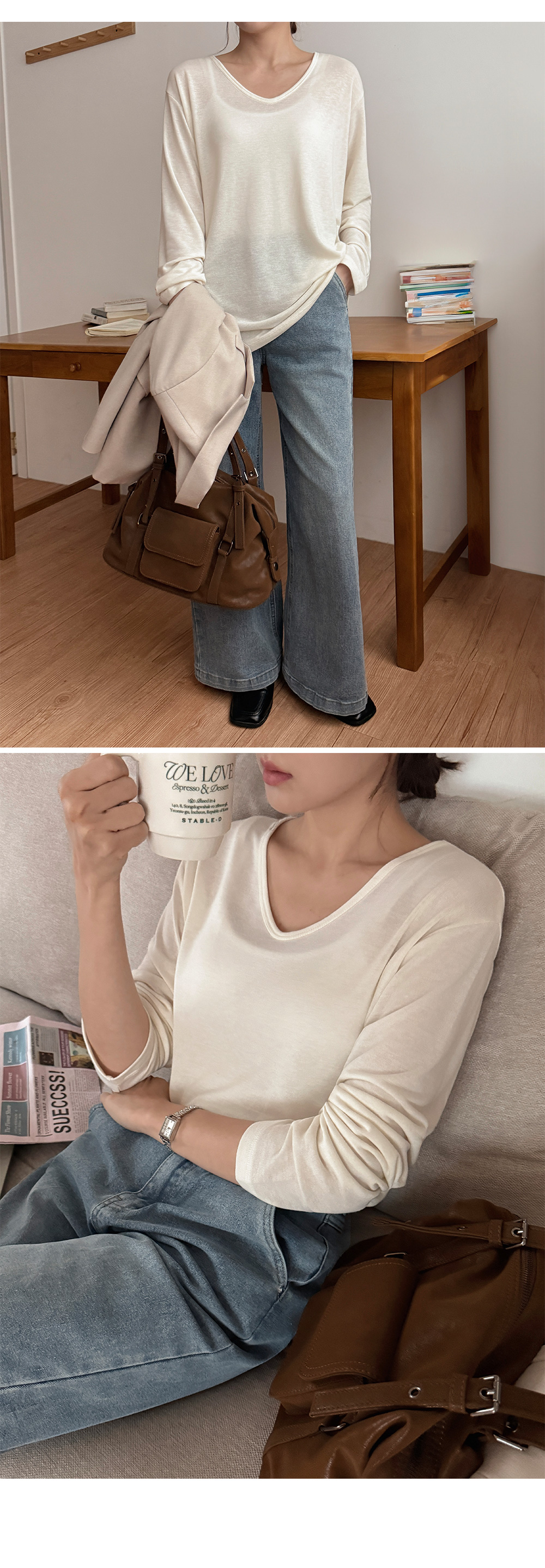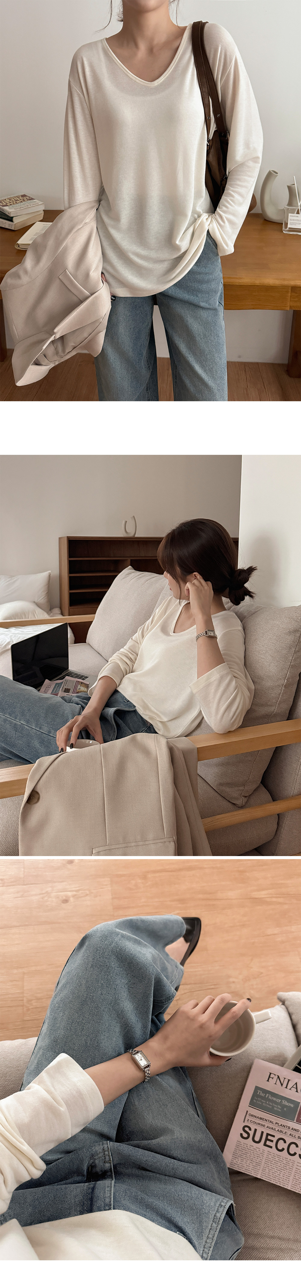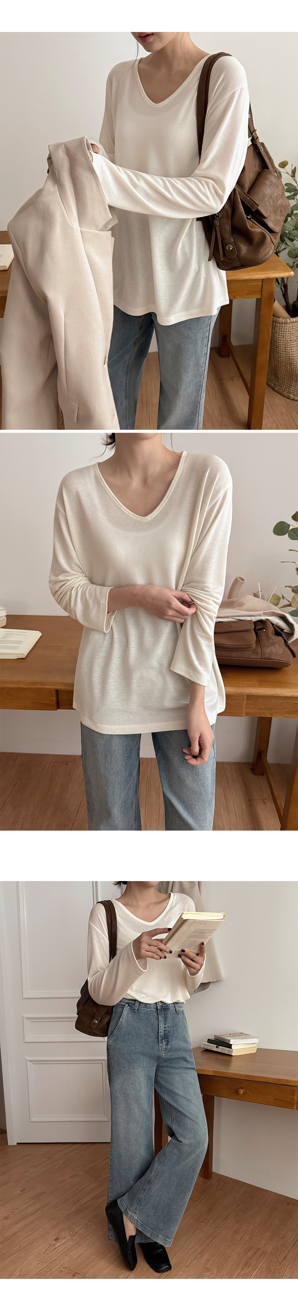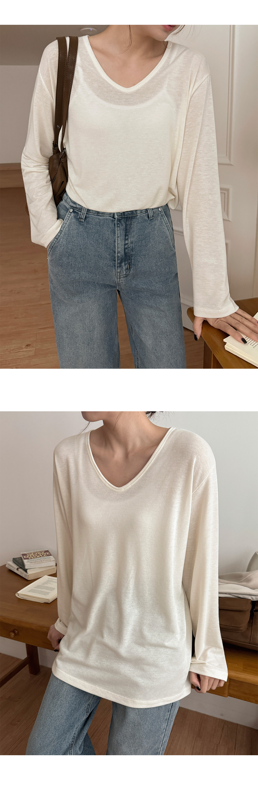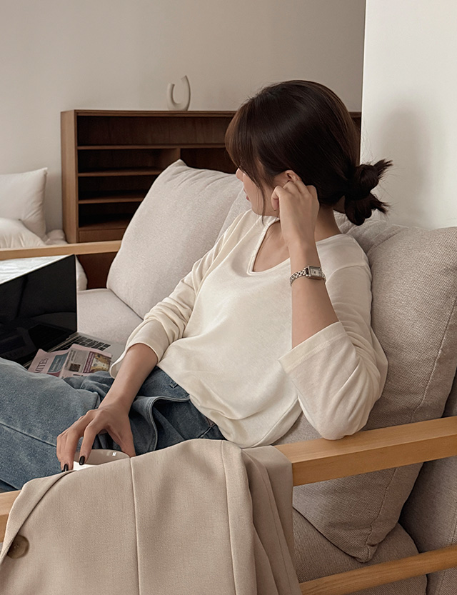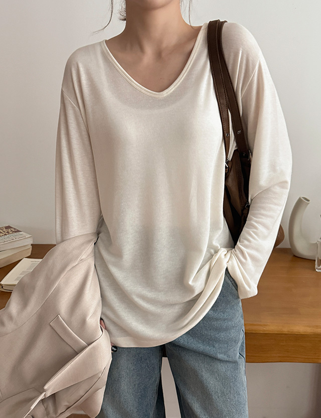 - 목선이 예뻐 보이는 과하지 않은 V넥