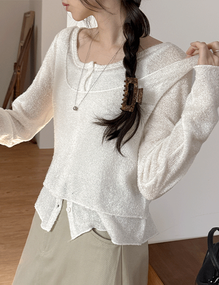 • 루인 부클 羊毛 针织衫 뷔스티에 背心 开衫 设置 86295