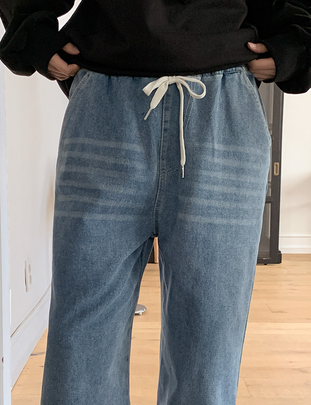 Banding Wide Denim Pants