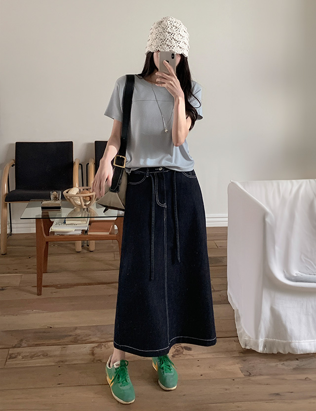 [논페이드] 앤더 뒷밴딩 腰带 牛仔色 长款 裙子 86380