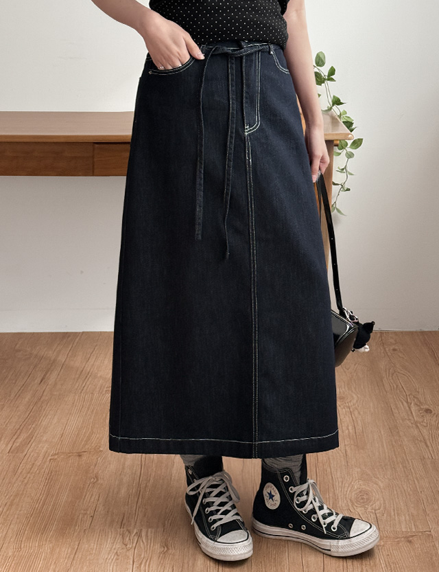 논페이드 뒷밴딩 벨트 데님 롱 스커를 소개해 드릴게요.