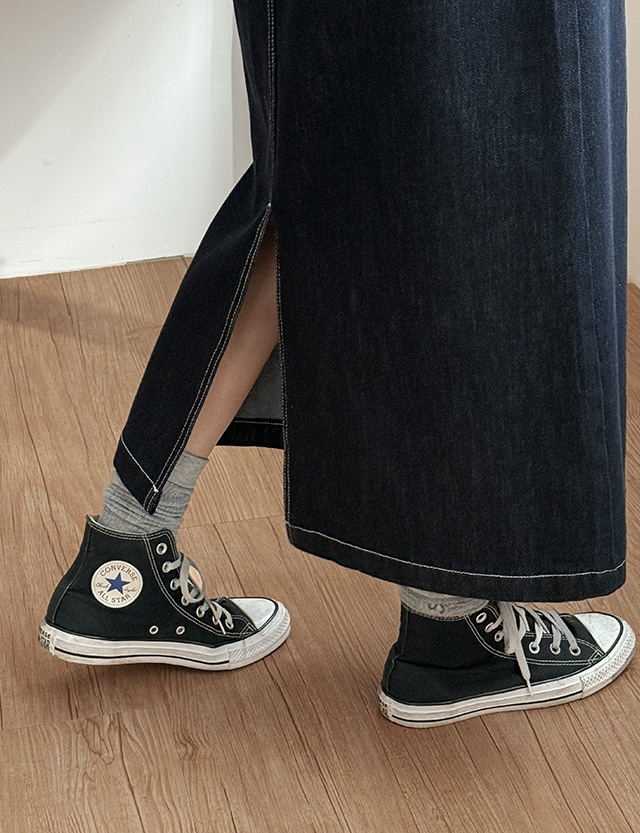 논페이드 데님 롱 스커트예요.