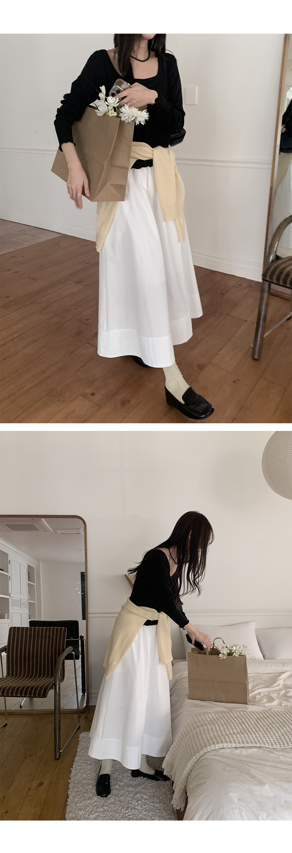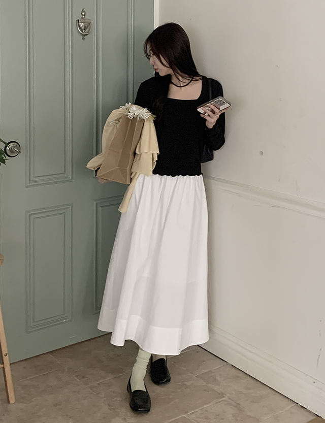 청순퐁당 松紧带 波浪群/喇叭裙 长款 裙子 86395