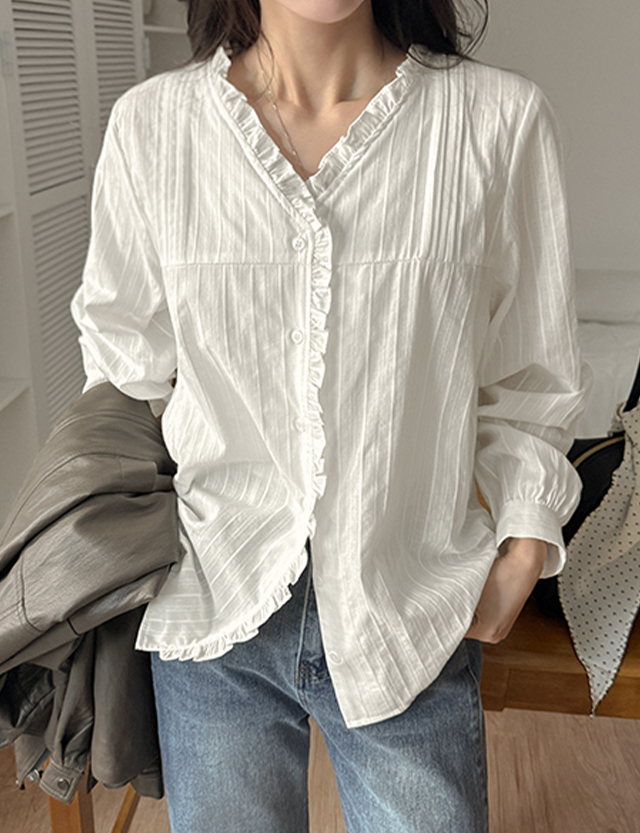 Frill v-neck blouse