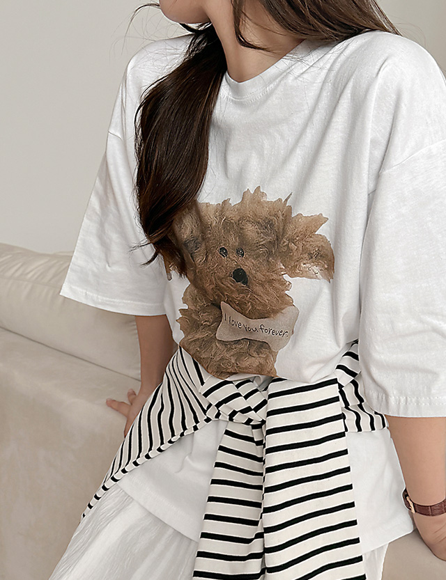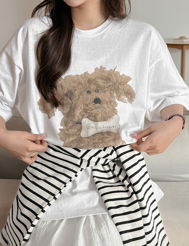 - 귀여운 강아지 프린팅이 돋보이는 반팔 티셔츠