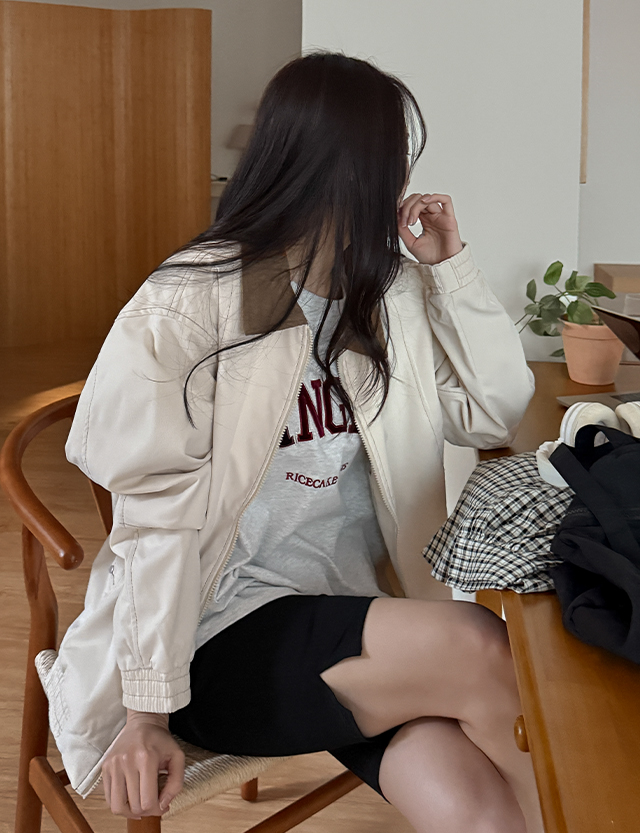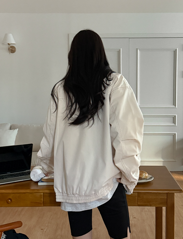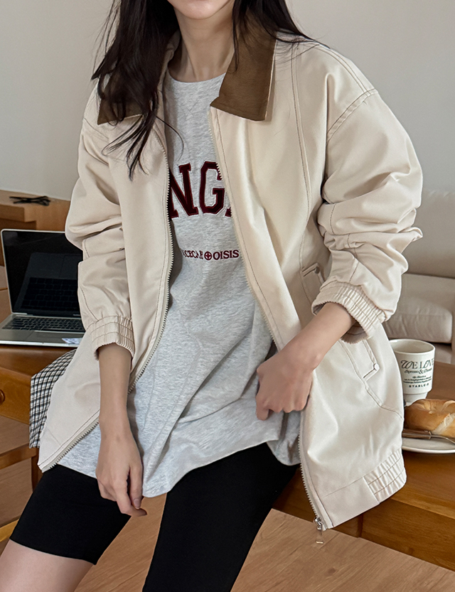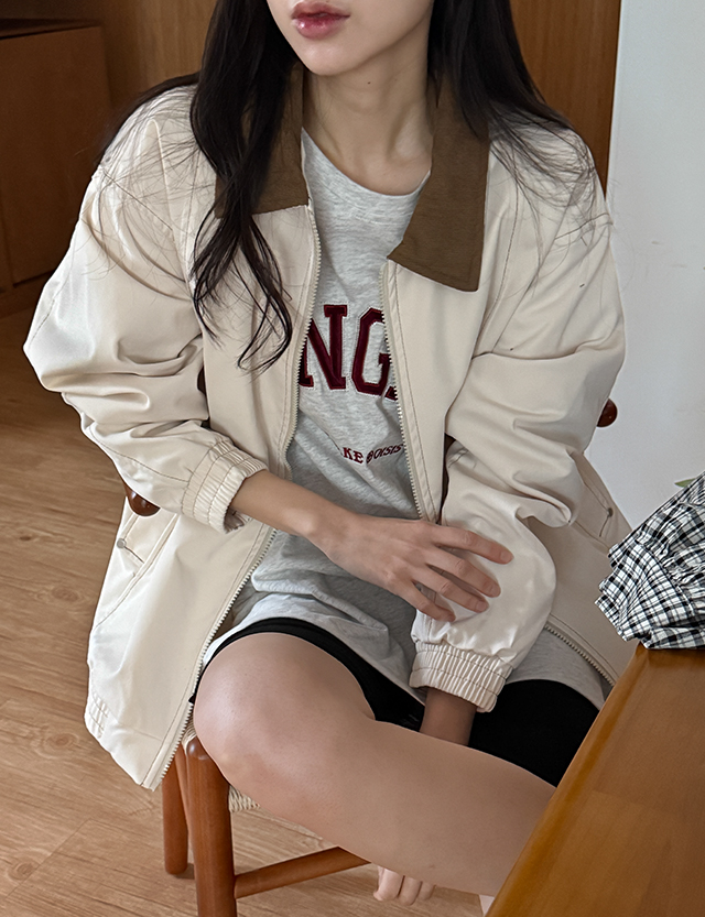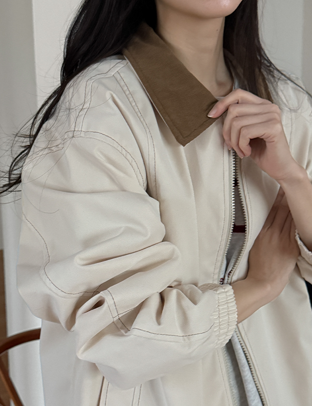 - 카라 부분 컬러 배색으로 포인트를 준 집업 워크 자켓