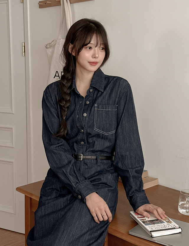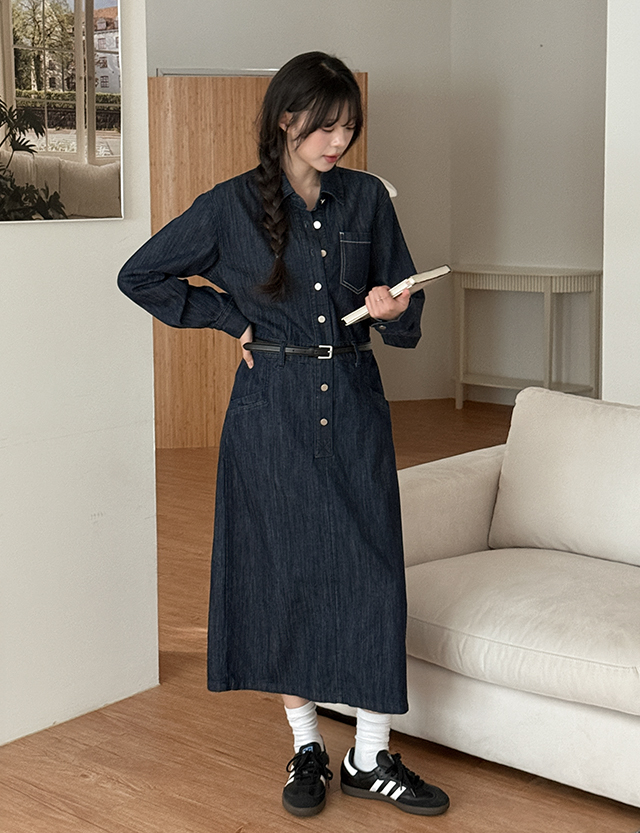 - 정석으로 깔끔하게 떨어지는 카라 롱 원피스로