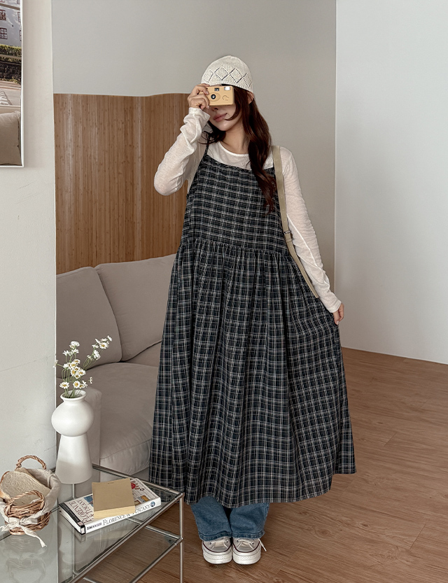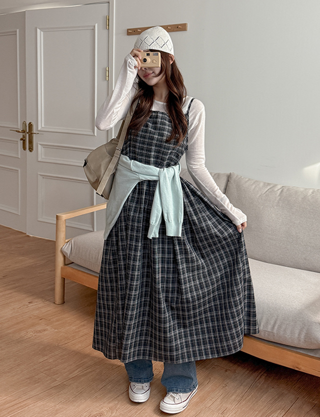 Check Bustier Long Dress