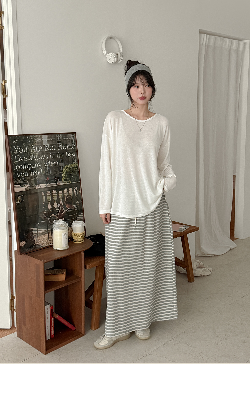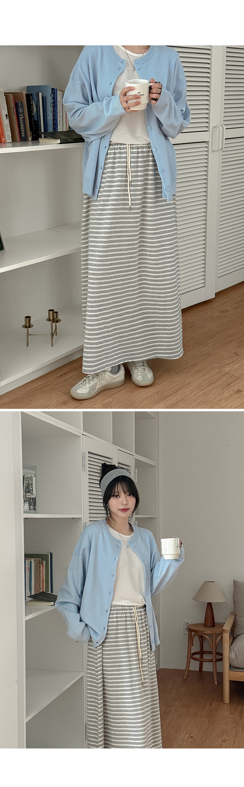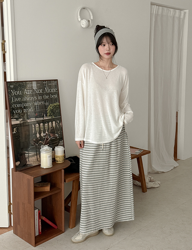• 렌므드 松紧带 条纹 长款 裙子 86379