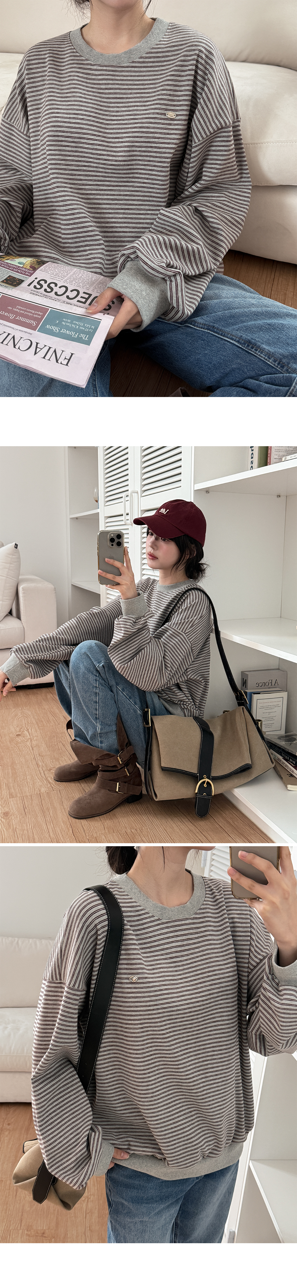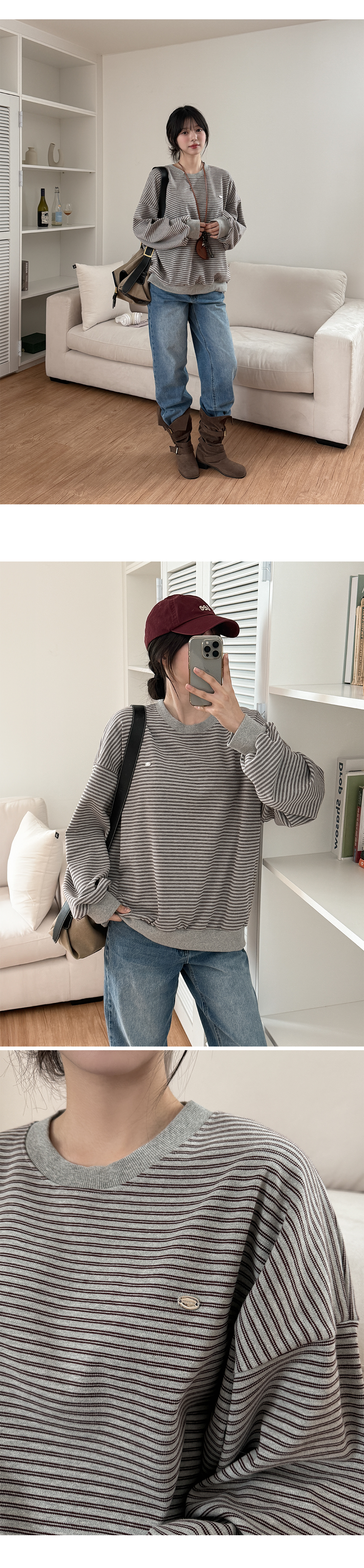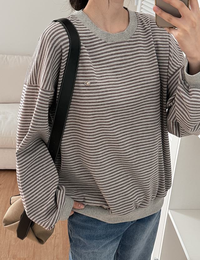 과하지 않은 은은한 스트라이프 패턴으로 코디에 포인트를 주는 맨투맨이랍니다.