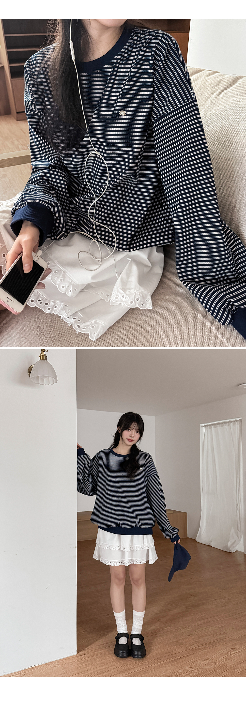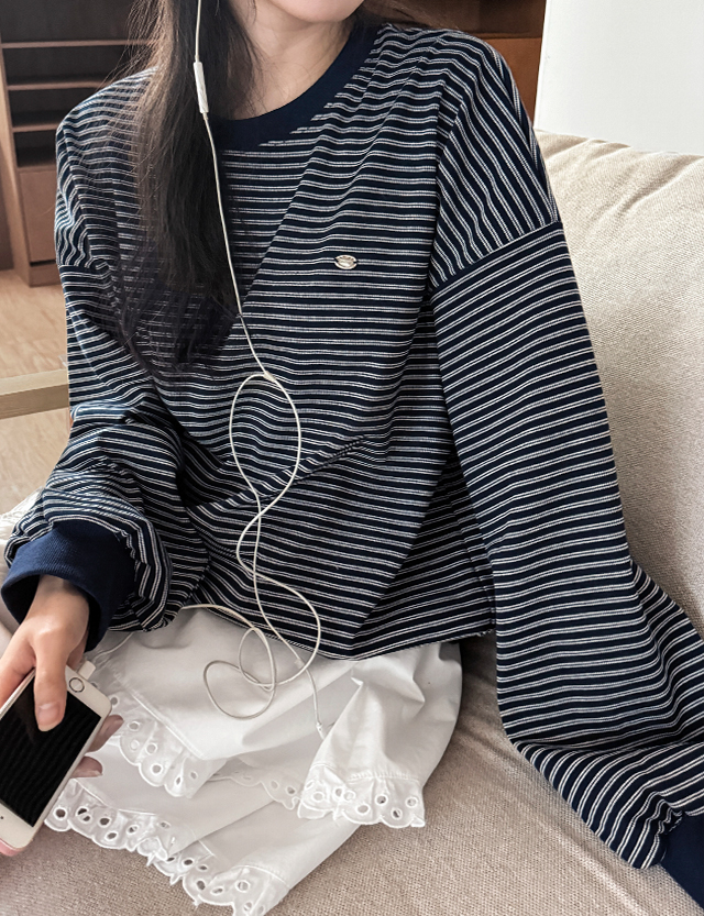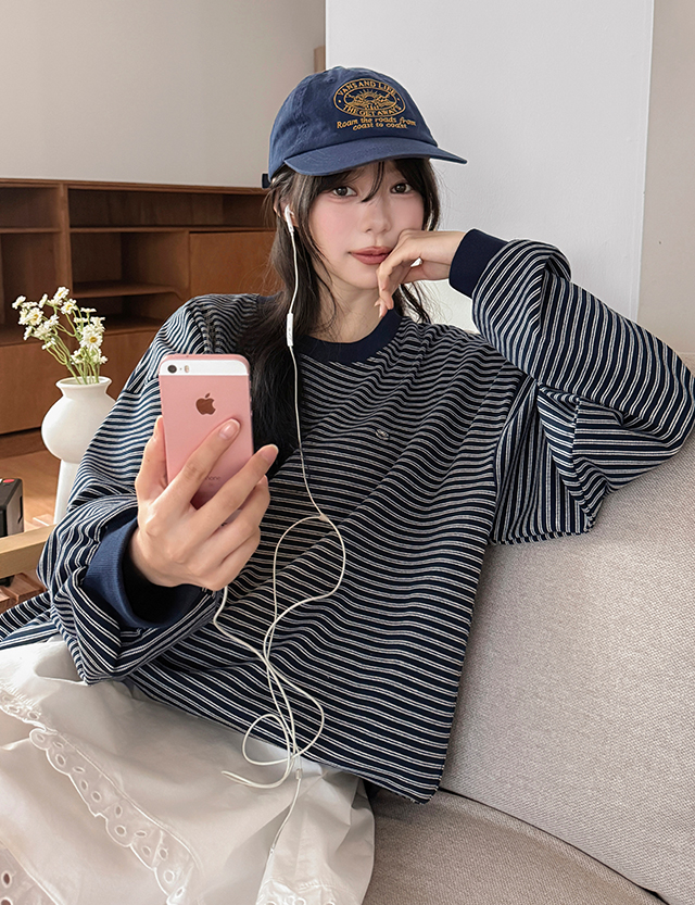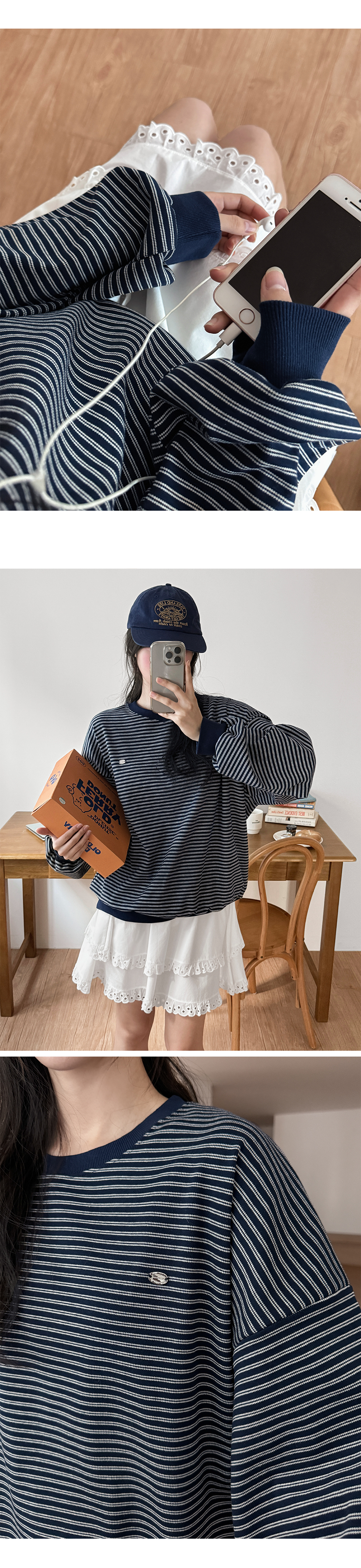 과하지 않은 은은한 스트라이프 패턴으로 코디에 포인트를 주는 맨투맨이랍니다.