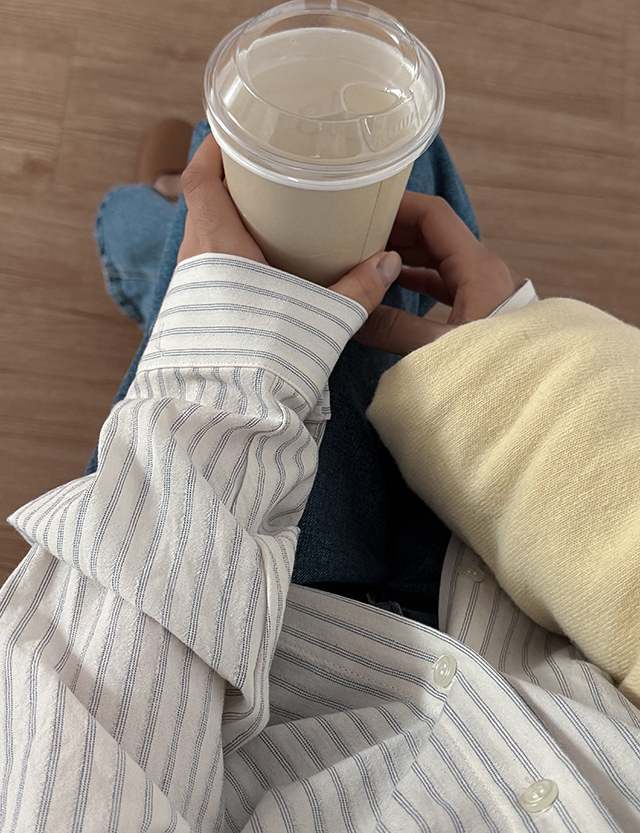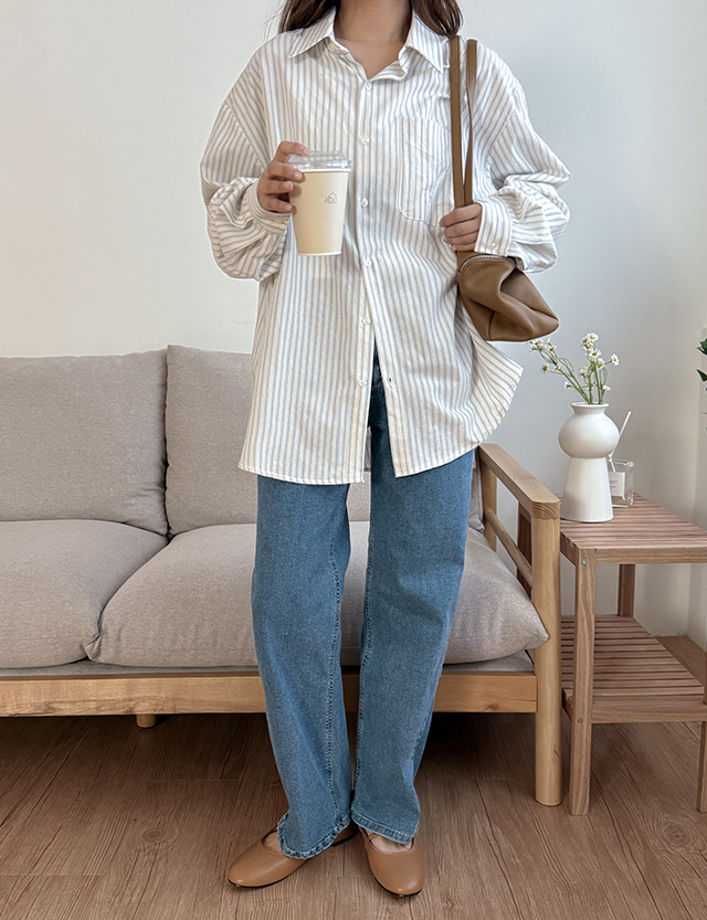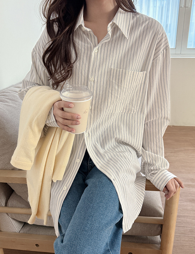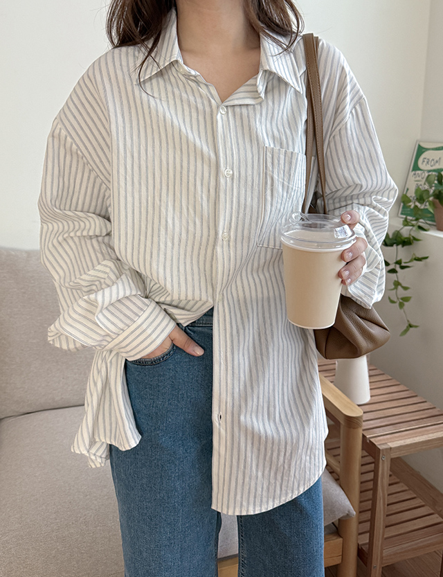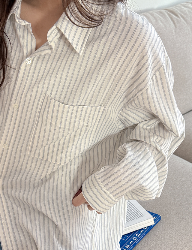 더시티 条纹 포켓 宽松 衬衫 86428