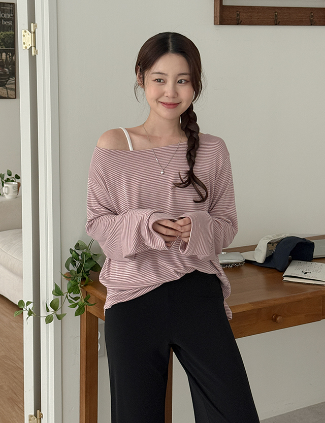 Boat neck stripe T-shirt