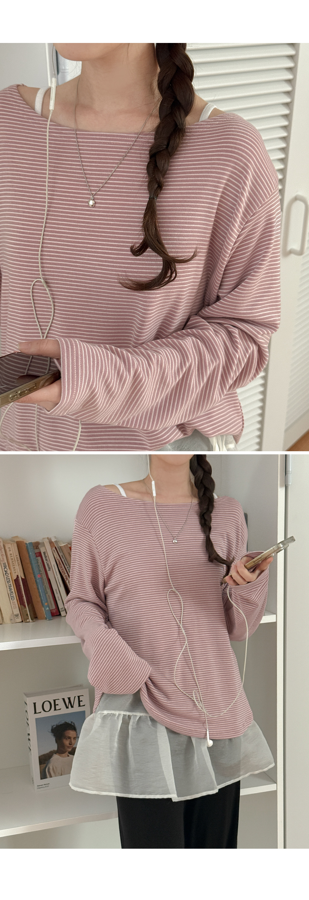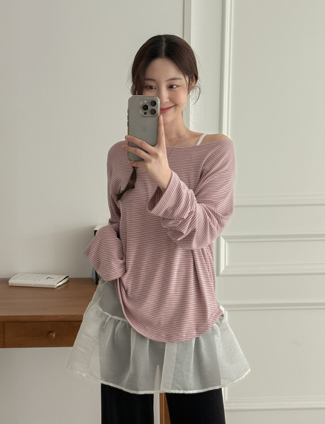 로핼 条纹 보트넥 长袖 T恤衫 86487