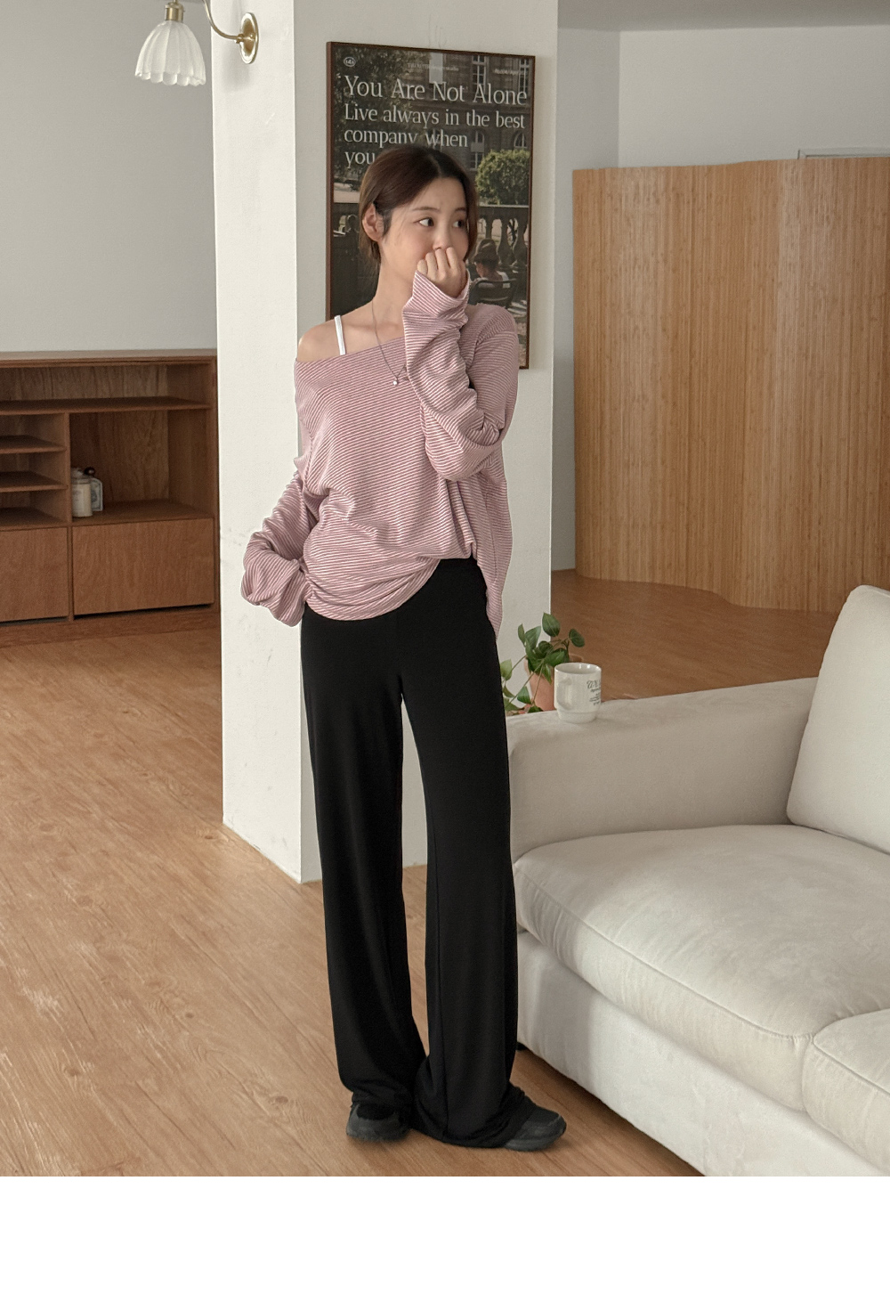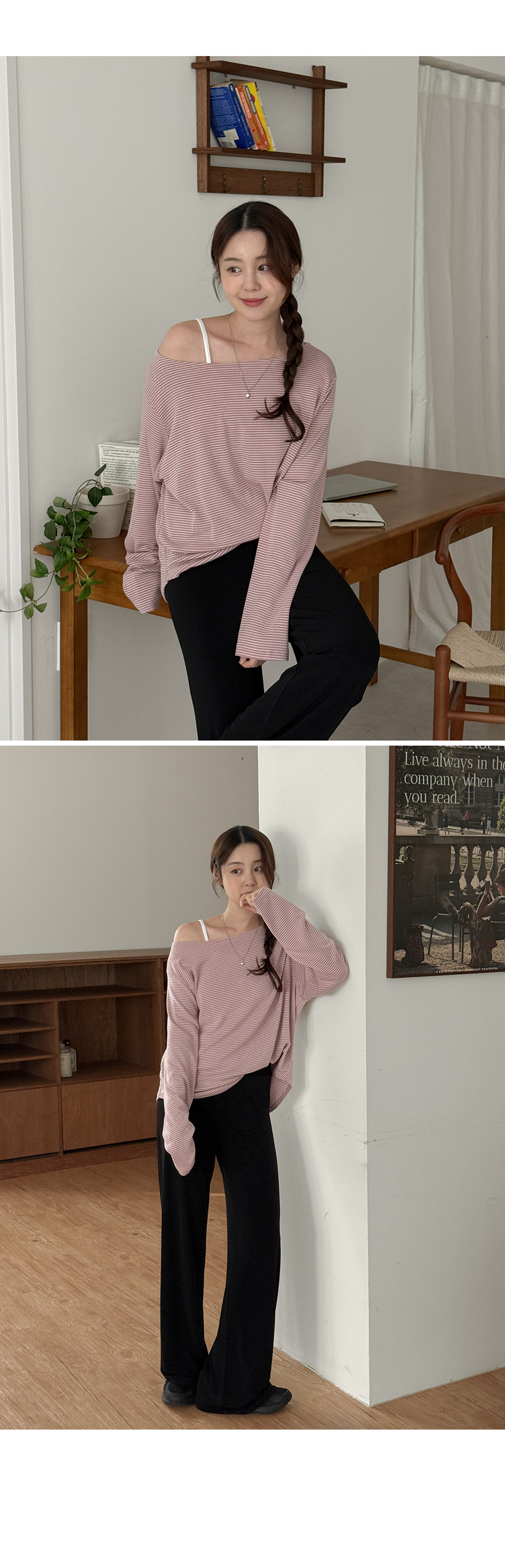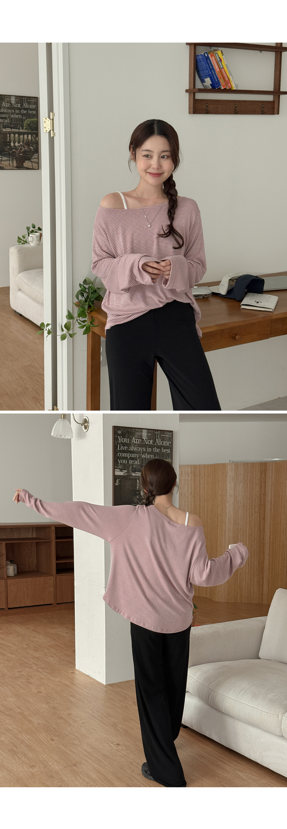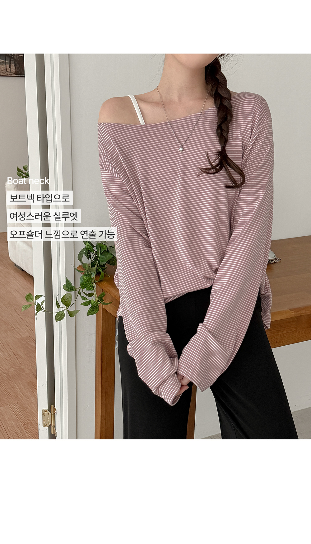 - 보트넥 디자인으로 여성스러운 실루엣