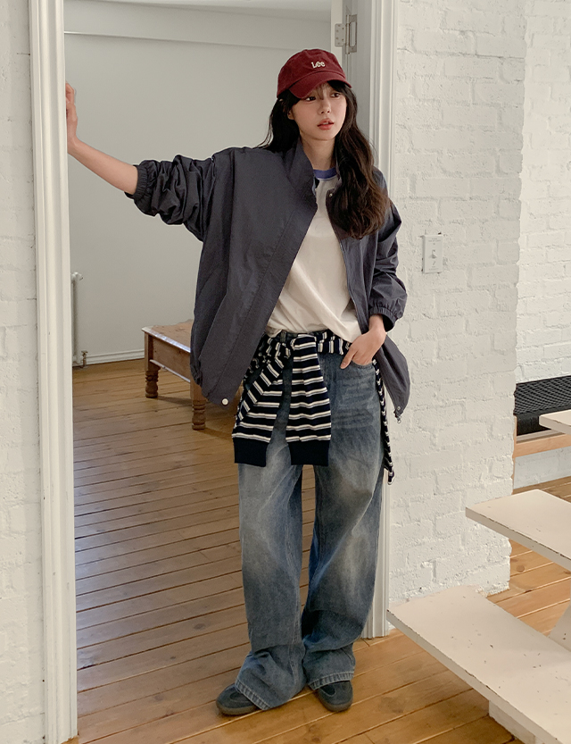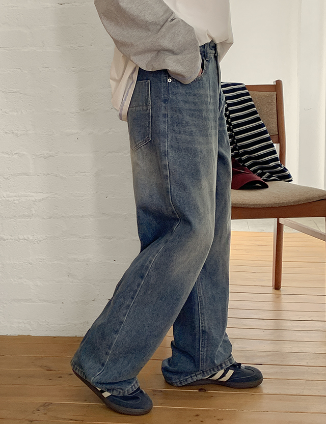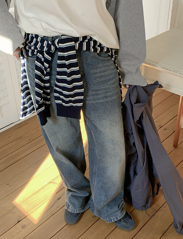 - 사계절 내내 활용하기 좋은 워싱 와이드 데님 팬츠