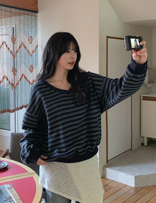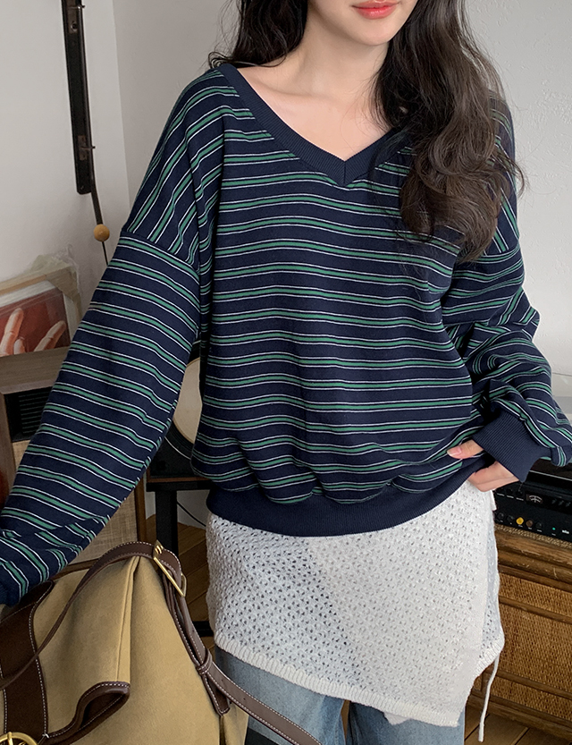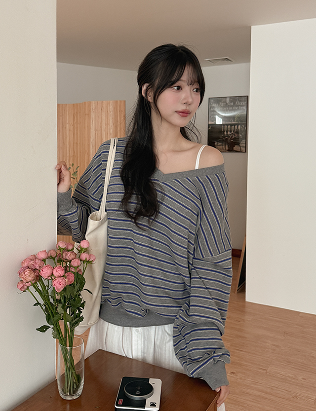 쇄골 라인이 은은하게 드러나는 브이넥 디자인으로