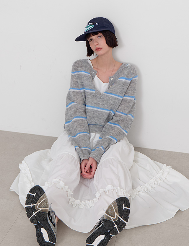 말차맛 条纹 버튼 针织衫 86620
