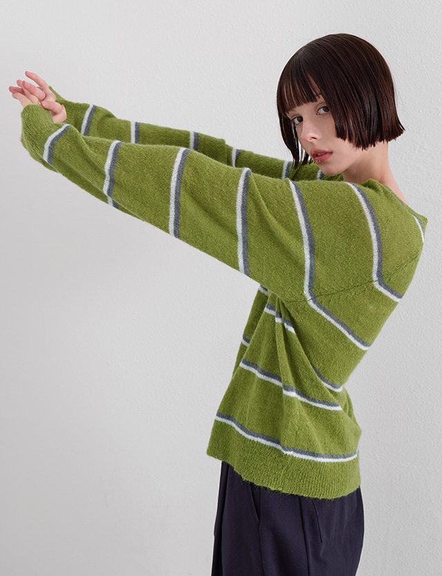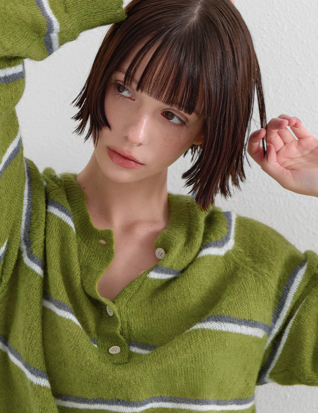Matcha Stripe Button Knit