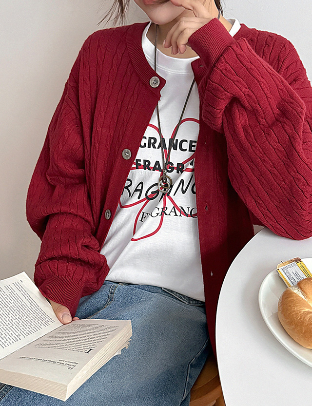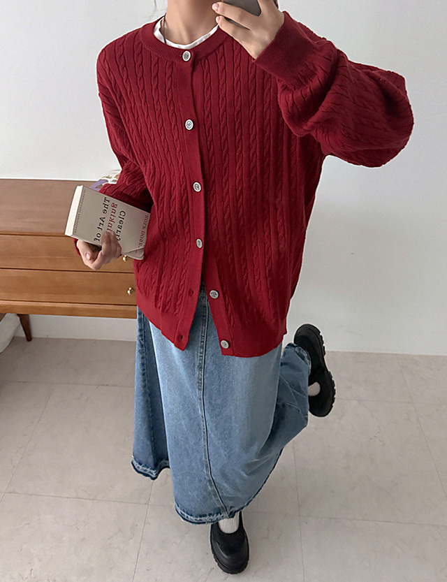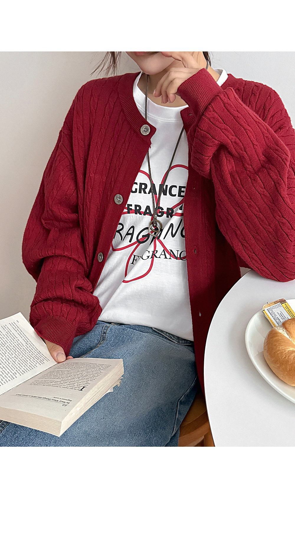브리오스 麻花型 圆领 宽松 开衫 86416