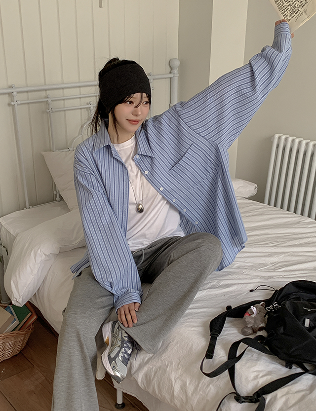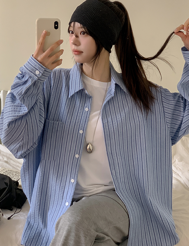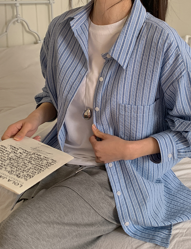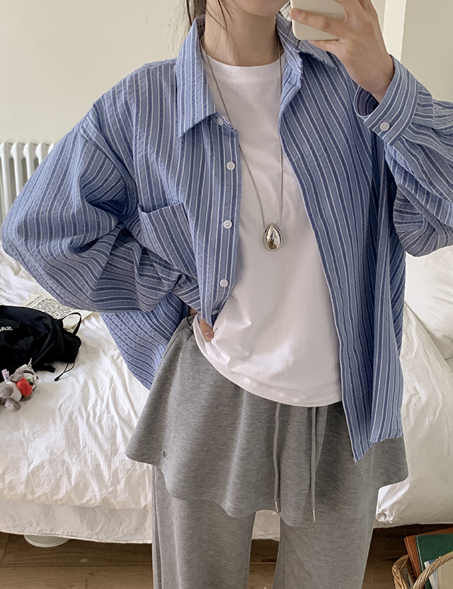 핀터감성 宽松 条纹 衬衫 86709